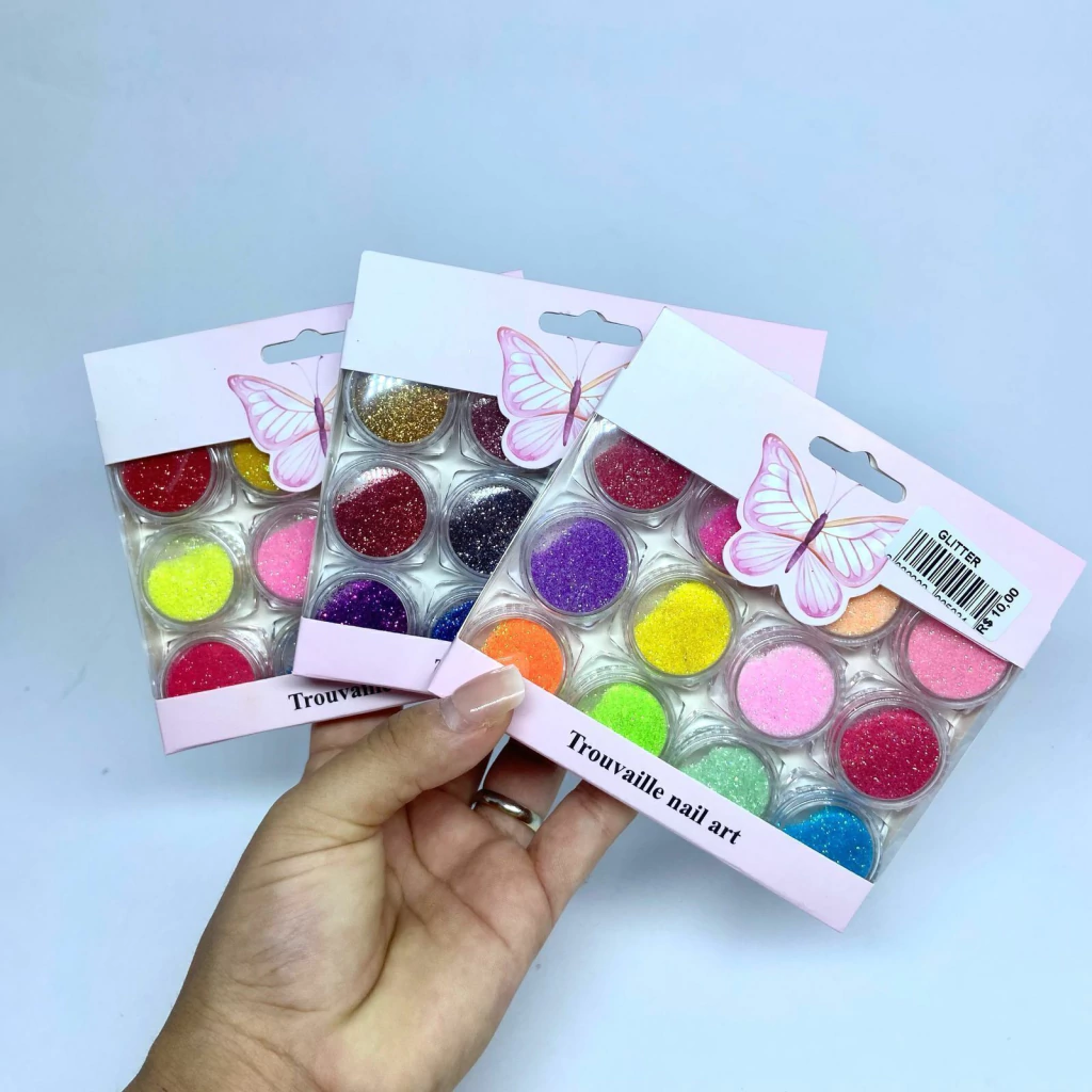 Caixa com 12 potinhos de glitter
